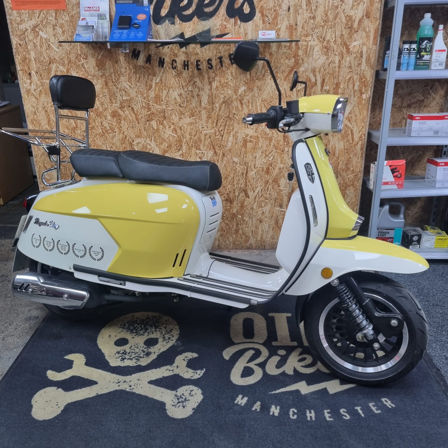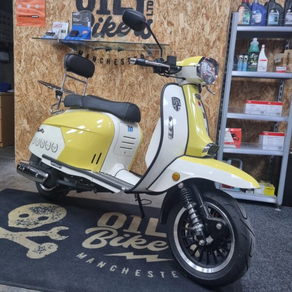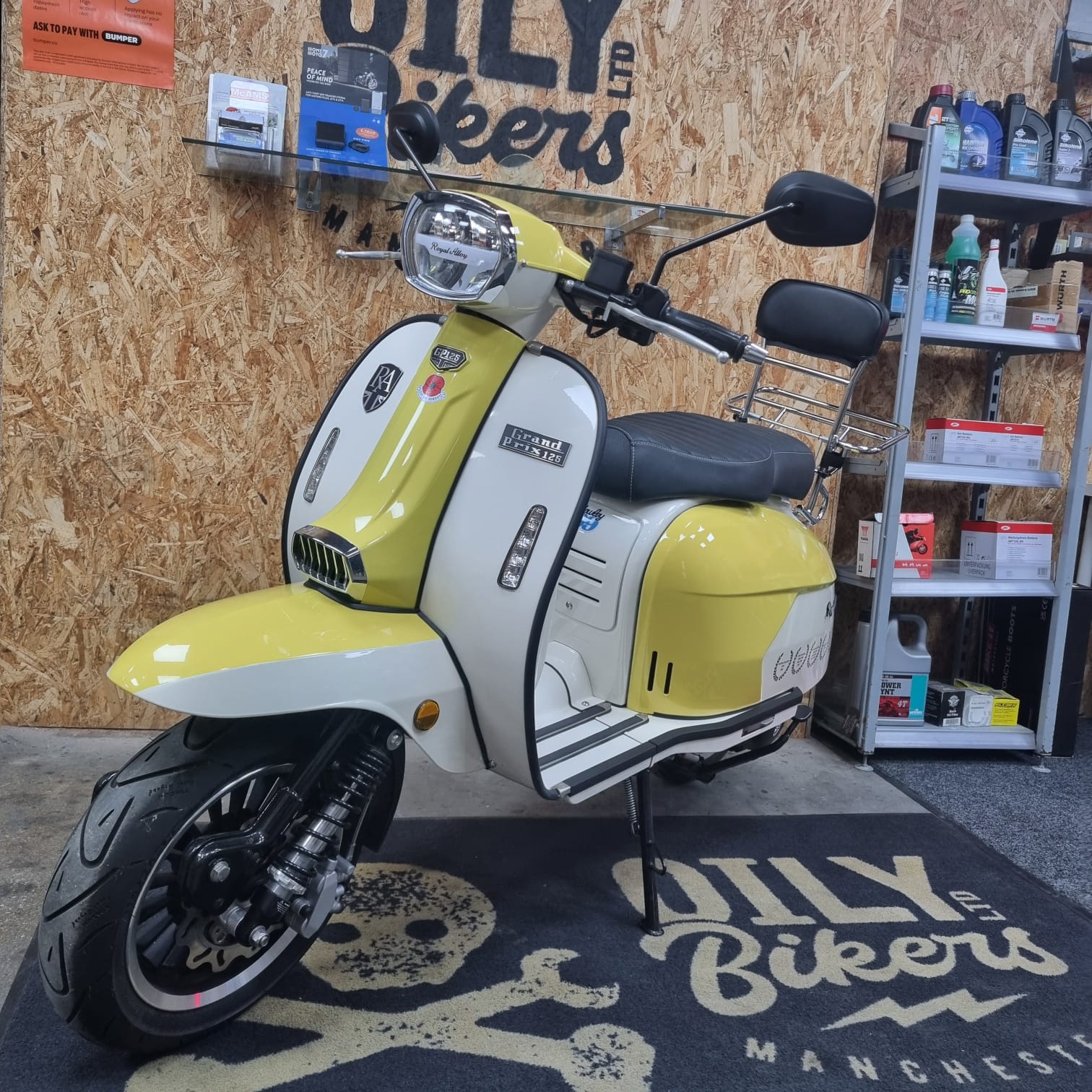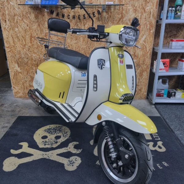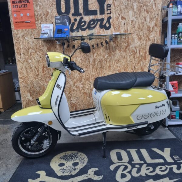 This Royal Alloy GP 125 Automatic is offered on Sale or Return due to owner’s health circumstances. Finished in the standout Yellow and Ivory (Lemon Yellow) colour scheme, the scooter presents exceptionally well and has clearly been well looked after.